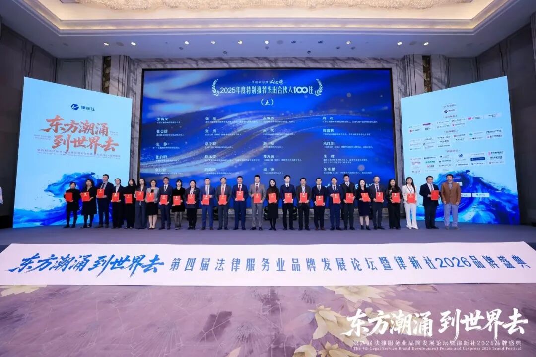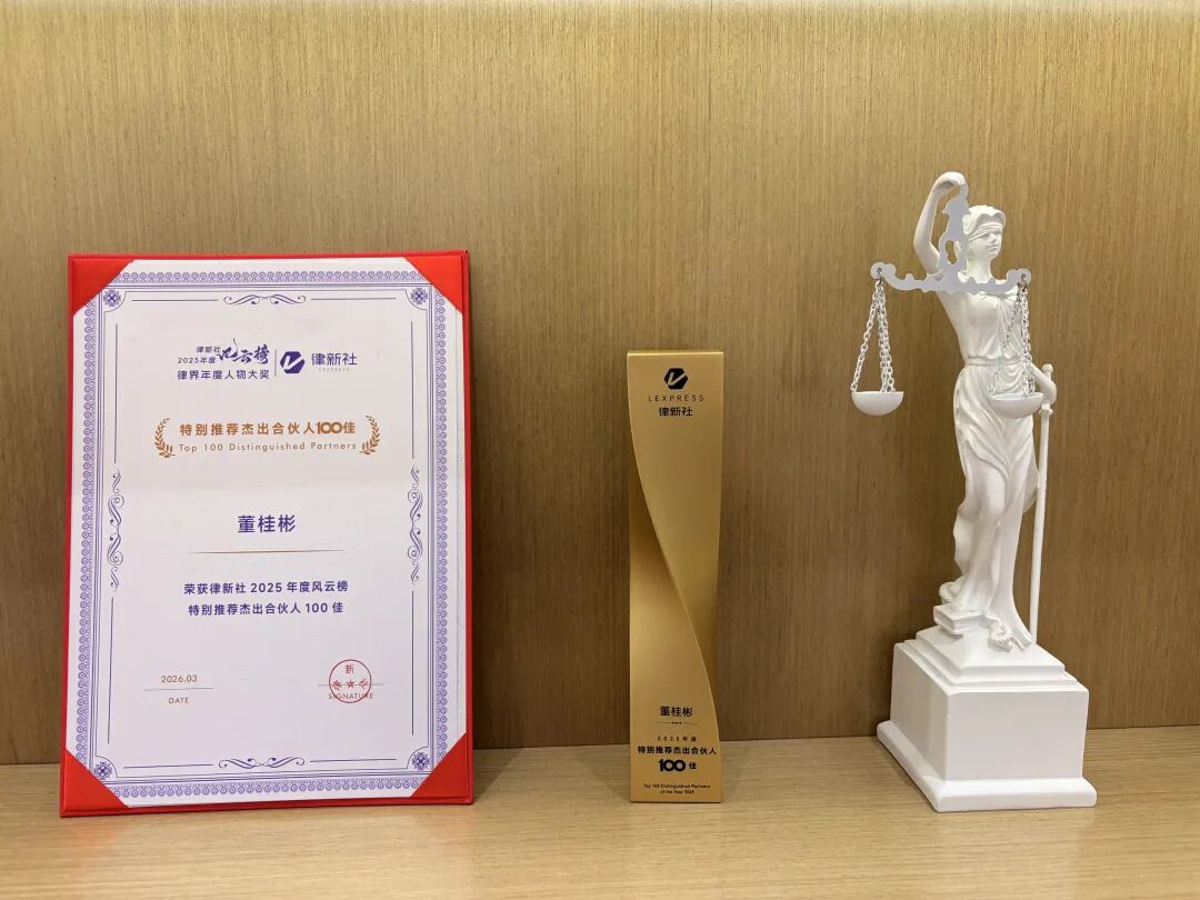 创始人、主任董桂彬律师,凭借深厚的专业素养、卓越的引领能力与广泛的行业口碑,荣耀登榜律新社2025年度风云榜,斩获“2025年度特别推荐杰出合伙人100佳”殊荣,并亲临现场载誉而归。